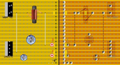 Hier mal was zum recht häufig angesprochenen Thema: "Wie bekomme ich 5V für meinen USB HUB?". Da mein Bauplan tief im Form versteckt war, habe ich ihn mal hervorgeholt. Basierend auf dem Schaltpan für einen Stepdownregler LM2576-T5 von blafusel.de.